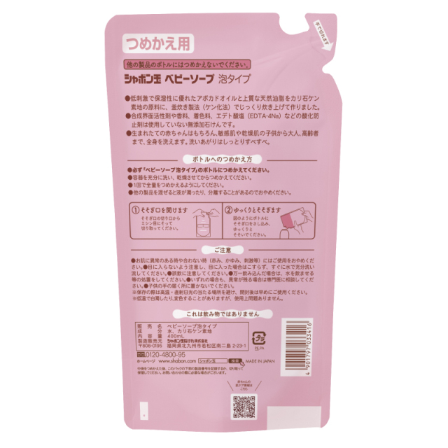 シャボン玉石けん ベビーソープ 泡タイプつめかえ用 400mL